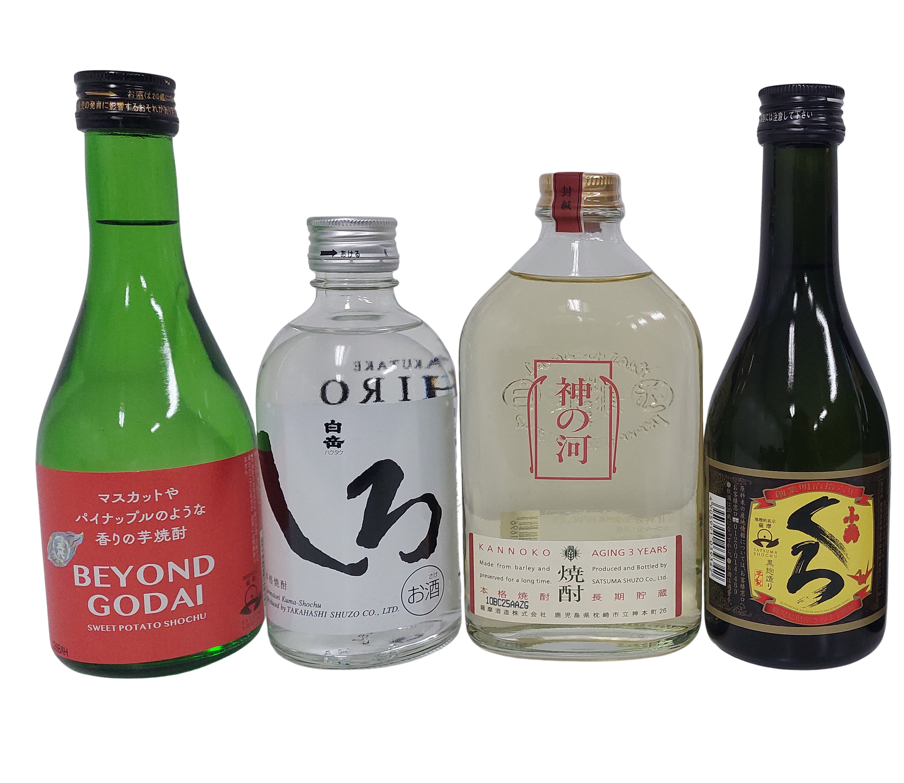 SSI認定資格の【焼酎唎酒師】のオンデマンドコース受講者向けテイスティング教材としてお送りしている、焼酎4種のセットです。